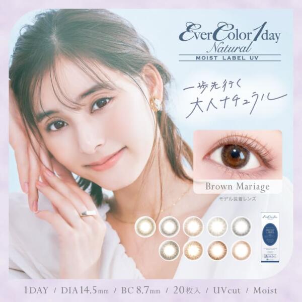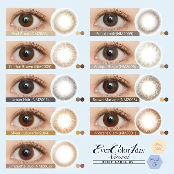 Ever Color 1day natural MOIST LABEL UV 自 2015 年上市以來,一直是 Ever Color 旗下深受用戶喜愛的系列,不但能為您帶來眼睛自然放大的美妝效果,還添加了天然的高效保濕成分 MPC,此外還有防 UV 紫外光功效,難怪名字這麼長!