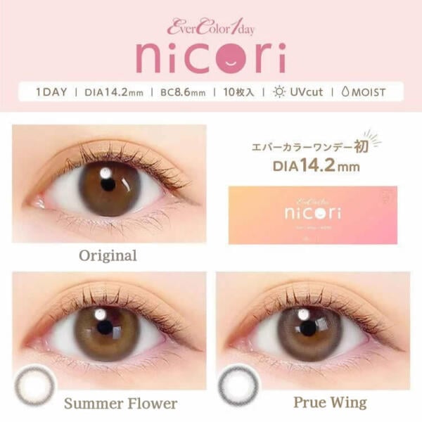 | Ever Color 1 Day nicori | 8.6 | 14.2 | 13.4 | 58% | 日拋 | 10片裝 |