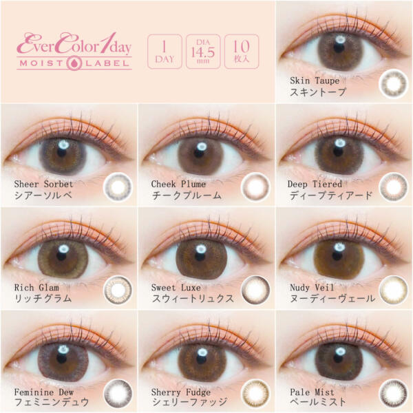 | Ever Color 1day MOIST LABEL | 8.7 | 14.5 | 13.6 – 13.8 | 38.6%、42.5% | 日拋 | 10片裝 |