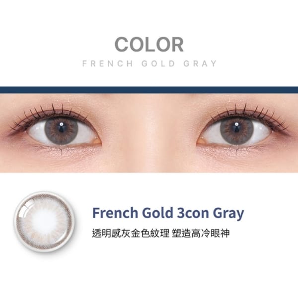 Olens French Gold 3CON 美瞳以13.1mm 著色直徑打造自然微混血眼神。獨特水彩三色漸變設計,賦予雙眸如玻璃彈珠般的立體透亮光澤,層次豐富。無論素顏或淡妝,皆能輕鬆駕馭,展現清澈迷人魅力。《此為預購品》訂貨期約 7 -14 個工作天(不含假日)