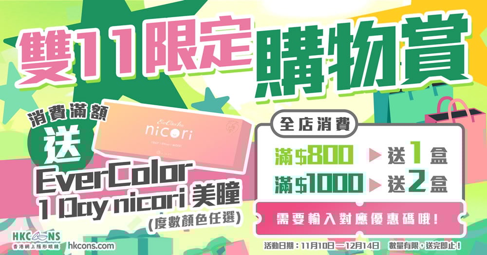 雙11活動優惠|全店滿額送 EverColor 1 Day nicori(2025/11/10–12/14)